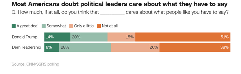 · CNN SSRS December polling finds that most Americans don’t think either party’s leaders care about what they have to say. (See chart below)
