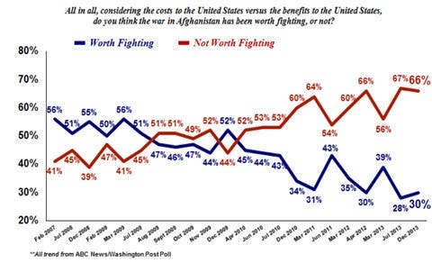 For sake of comparison, these numbers are nearly identical to feelings towards the war in Afghanistan triggered by the 9.11 attack.